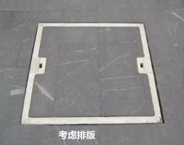 ▲裝面層上的各類井蓋在處理時應(yīng)提前與鋪裝排版模式進行核對,確保不破壞整體鋪裝效果