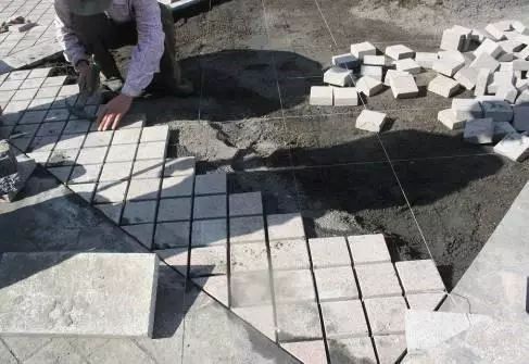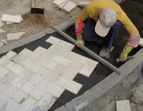 園林道路石材鋪裝石雕欄桿施工全過程,準(zhǔn)備工作→基層處理→彈線→試排→刷水泥漿及鋪砂漿結(jié)合層→鋪貼石材→灌縫、擦縫→成品保護