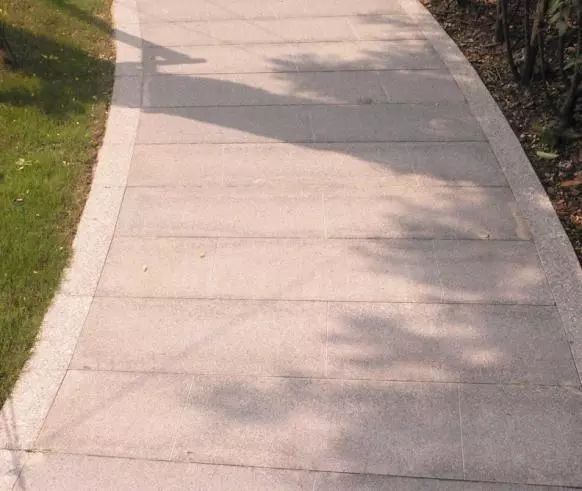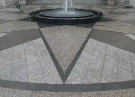 ▲平面鋪裝涉及到曲線段時為了保證拼縫方向與行走方向一致,鋪裝石材必需使用弧形板過渡。