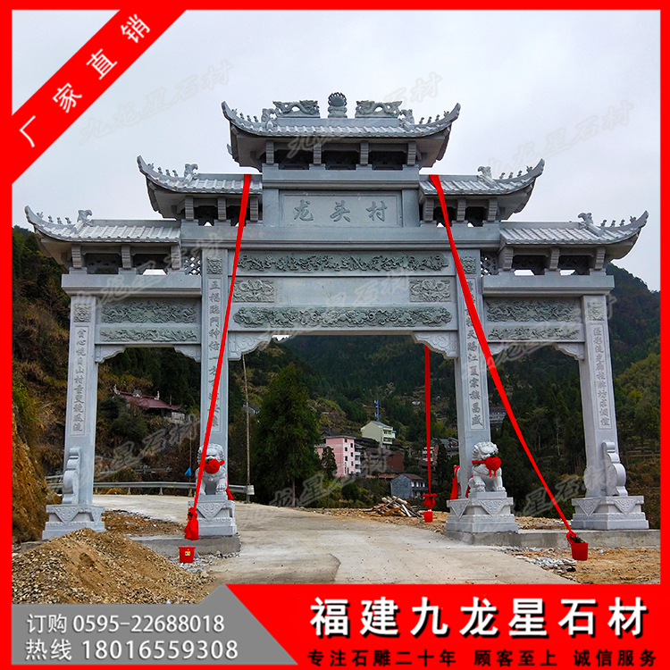 村口石牌坊便是建造在農(nóng)村入口的石牌坊、石牌樓,在鄉(xiāng)村石牌樓的限度精準(zhǔn)定位上,要考慮到人視覺效果認(rèn)知、石牌樓、周圍環(huán)境中間的關(guān)聯(lián)。