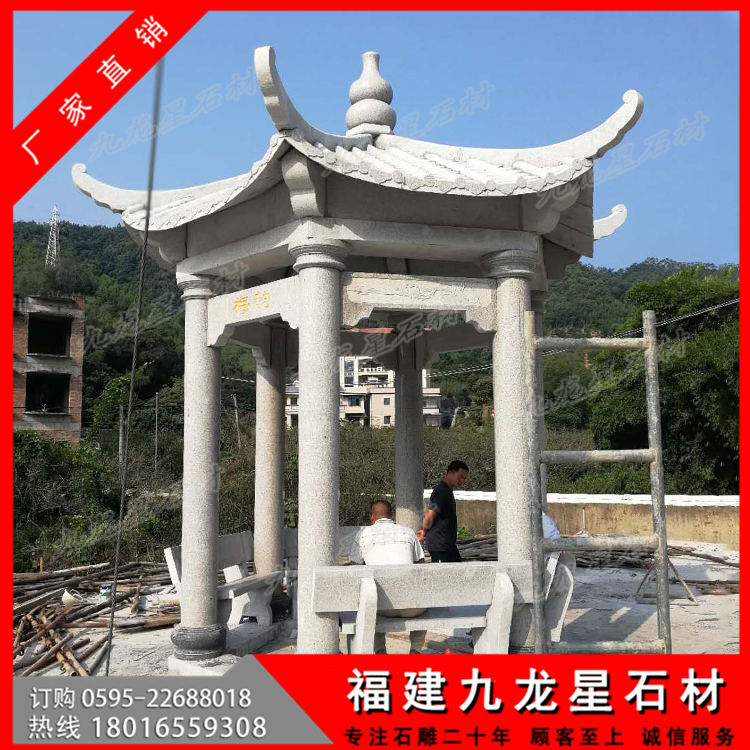 公園石雕涼亭是在現(xiàn)代公園設(shè)計中經(jīng)??吹降?它主要的一個功能是提供人們休閑、休息的一種場所,所以在建造公園石亭子時要考慮到人們休息時的空間以及人們在使用的的安全問題,還有因為石亭子是設(shè)置在公共場所,為避免人們亂寫亂花的問題,要在建造亭子時,就要考慮到這個問題做好亭子的防水防油。