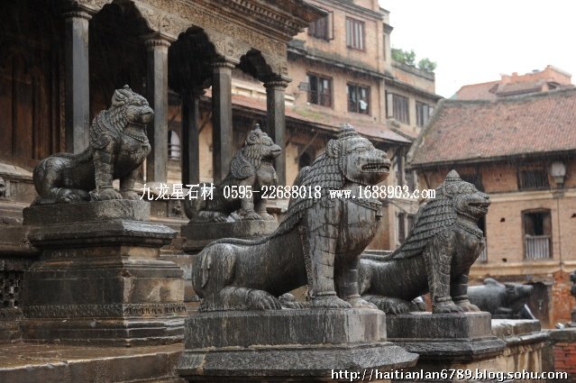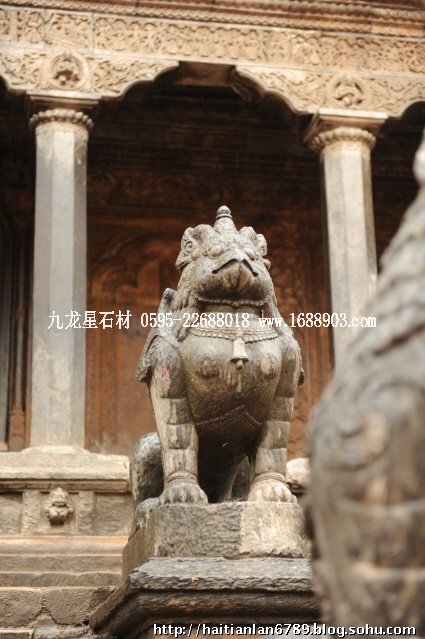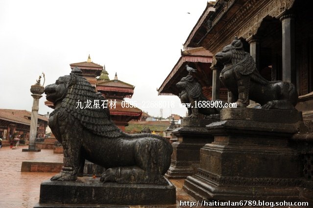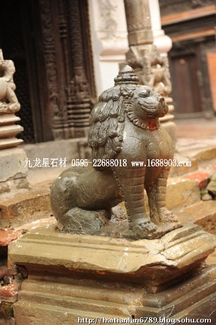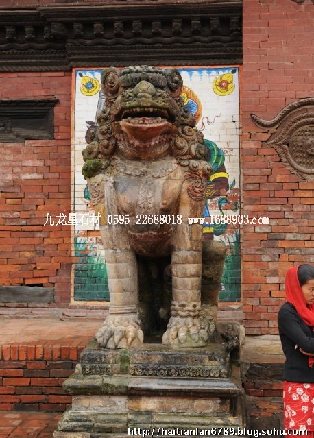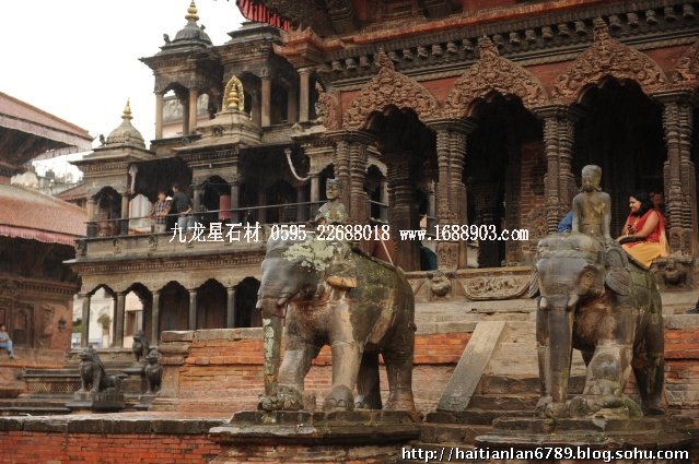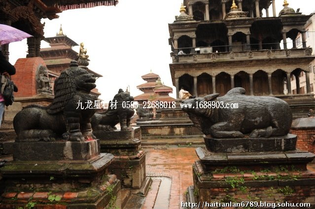 帕特王宮廣場匯集了眾多風(fēng)格古樸的寺廟和石雕。眾石獅們?cè)诟髯缘膷徫簧先找故匦l(wèi)著馬拉國王的古代宮廷,黑天神廟,加格納拉揚(yáng)神廟,帕特國王雕像柱和黃金廟。尤其是廟克里希納廟、也稱黑天神廟,處在王宮廣場的核心位置,供黑天神,建于1667年,由于是王室所建,規(guī)模自然比普通神廟大一些,氣勢(shì)上勝一籌。所以從外觀上就可以看到,整個(gè)神廟坐落在高臺(tái)基之上,主殿的圣所正上方,聳立著一座有21個(gè)鎦金塔頂?shù)闹窆S狀塔頂,塔亭的欄桿間,栩栩如生的雕刻著印度古典史詩《摩坷婆羅多》和《羅摩衍那》的圖像、神像和鳥獸。除塔頂外完全用石頭建成,遠(yuǎn)遠(yuǎn)望去,像是一件精美的石雕工藝品。這是尼泊爾建筑藝術(shù)的奇跡,而這樣一座偉大的建筑,竟完全不用圍墻,也沒有手持武器的衛(wèi)兵。那么,誰來護(hù)佑她的安全呢?自然是石獅子了。門前一個(gè)獅子衛(wèi)隊(duì),那叫一個(gè)威武啊,就算是牛鬼蛇神壞人也沒有敢起歹心的。