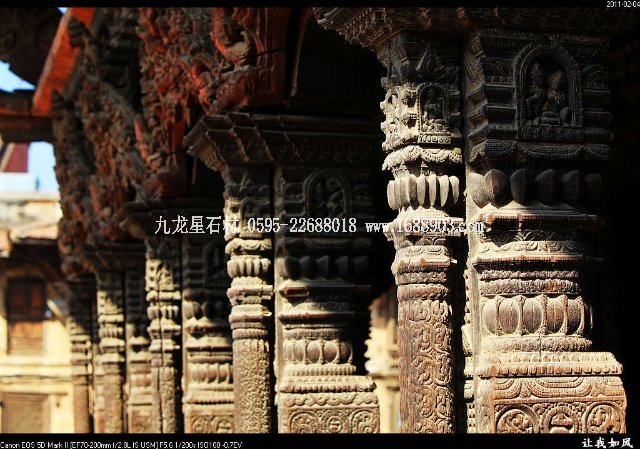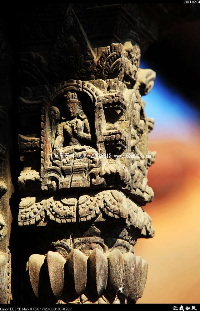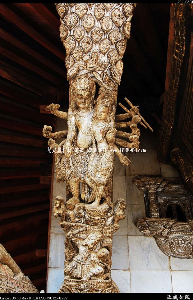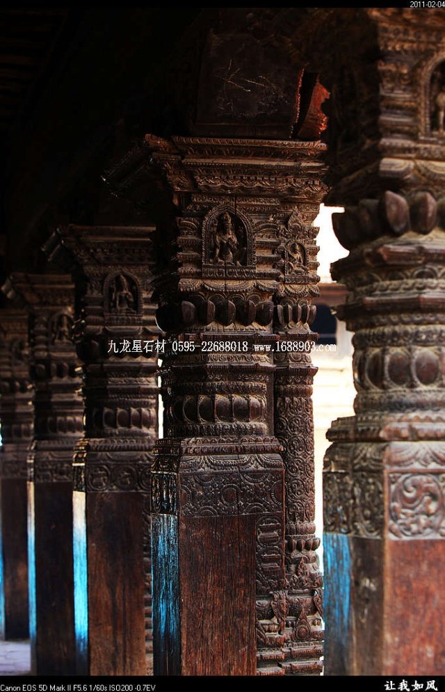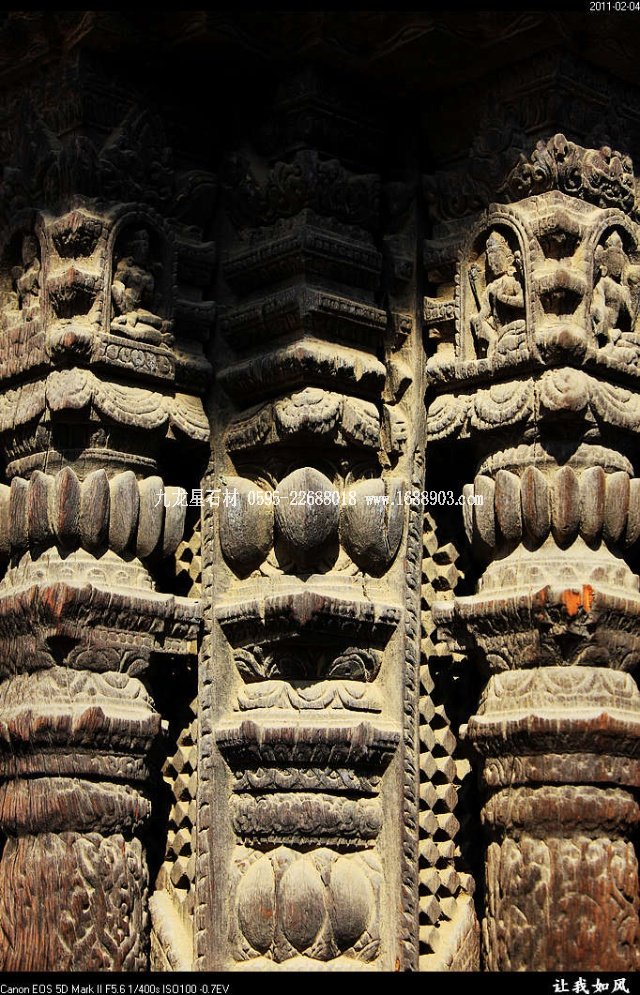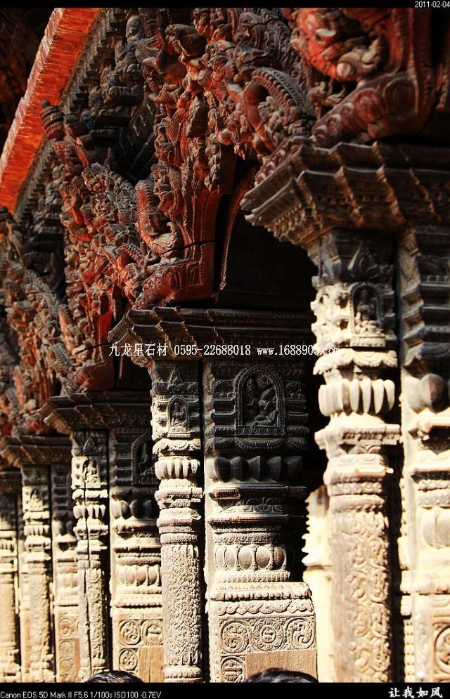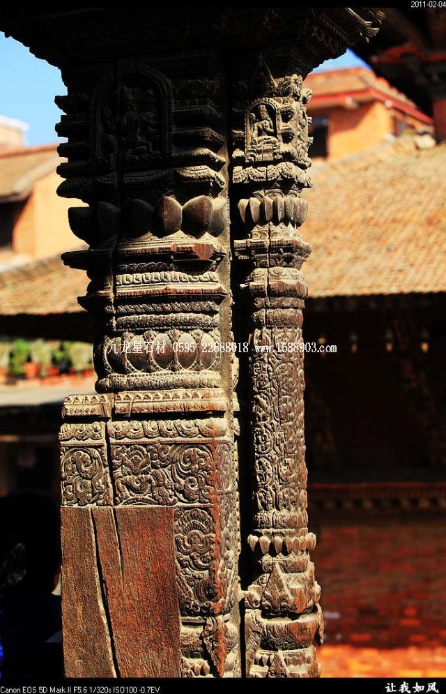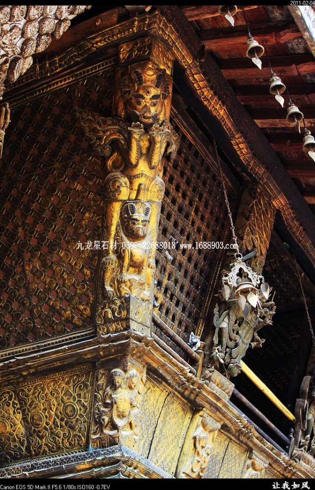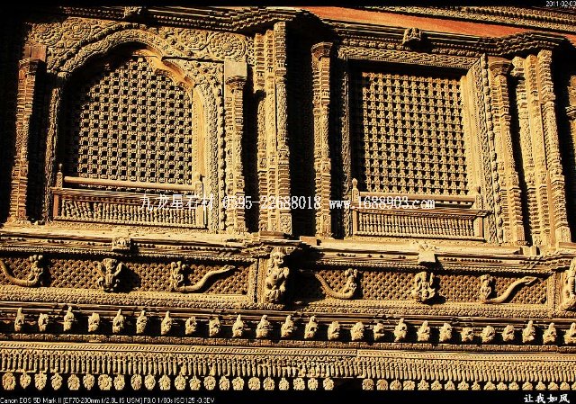 傳統(tǒng)的尼泊爾建筑,都使用雕刻木件,王宮和廟宇建筑自不必說(shuō),就是普通民居也是如此。使用雕刻木件處,主要是一些外露部分,如門、窗、廊柱、欄桿、屋頂及廊頂?shù)膿沃???梢哉f(shuō),凡是外露的部分,有木件就有雕刻,而且都是人工雕刻。