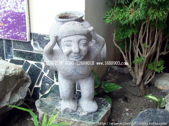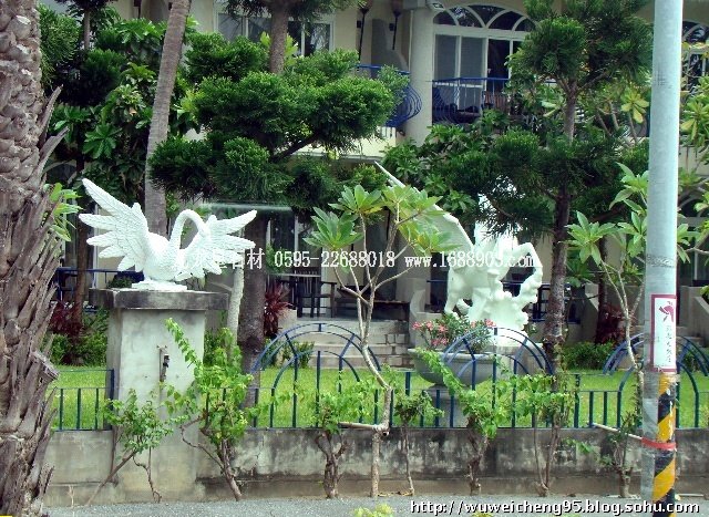 ①大理石加工廠門前花園里的石雕,既顯示一下該廠的雕刻技術(shù),又可以和園里的景色匹配.