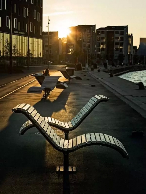 Aalborg Waterfront II是該景觀項目的二期工程,此次設計依舊用景觀大道將周邊景致整合起來。在平坦的前灘后是一些凸起的小山丘,設計師從這些自然景色中獲取靈感,將基底抬高,上面建有連貫成片的臺階,既可以用于抵御洪水,又是可休憩的坐凳。項目中采用原生簡單的材料,在一系列的開闊廣場上種植了茂密的樹林。