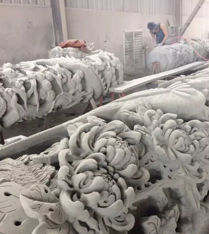 惠安南派石雕技藝精湛,歷代佳作紛呈,尤以青石龍柱雕刻為最突出。在南方眾多地區(qū)的寺廟、觀、宗祠等古建筑中較常見到,尤其福建、廣東、臺灣及東南亞地區(qū)。今天特意到雕刻車間給大家拍些傳統(tǒng)龍柱的制作現(xiàn)場,由于現(xiàn)場風(fēng)塵較大,清晰度大受影響,大家勉強看吧。同行則共勉,其他朋友則了解。