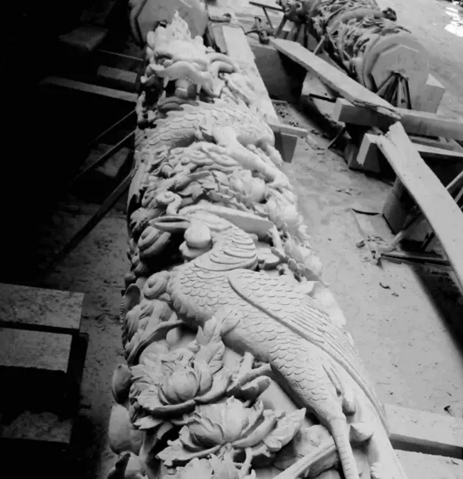 南派石雕代表作—青石龍柱 雕刻現(xiàn)場
