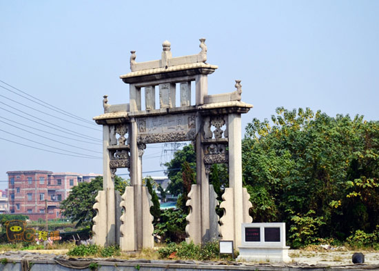 牌坊高7米,長11.94米,以花崗石雕鑿構(gòu)筑,石雕有蹲伏獅子及鳥類花木圖案,四柱三間樓式牌坊,正面上刻:“恩榮”二字,下方是“良二千石”四字,右側(cè)刻“兩廣軍務(wù)巡撫廣東地方口口口右都御史兵部右侍郎殷正”,左側(cè)刻“萬歷二年甲戊科進士朱壤”牌坊背面刻“賜進士第中憲大夫,四川夔州府知府前福建延平府南平縣知縣,江西樵州府臨川縣知縣,南京戶部主事,戶部員外郎,欽差督理浙江北新關(guān)稅務(wù),戶部郎中,贈兵部左侍郎崇杞府縣鄉(xiāng)賢朱壤”。