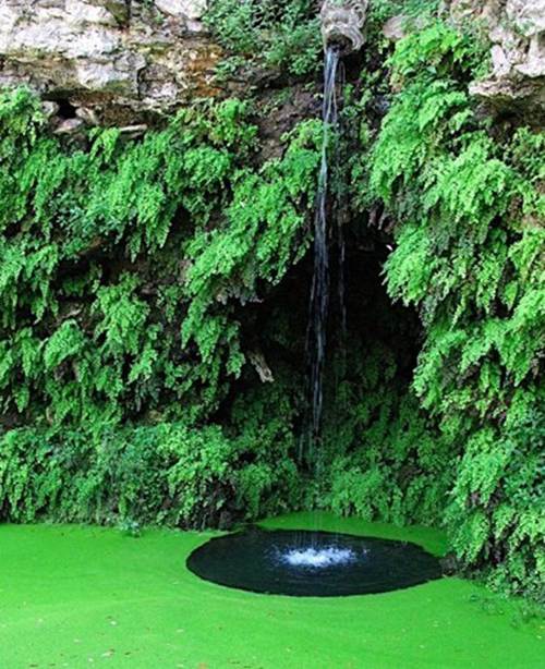 踏上三層臺地后順著長方形水池向半圓形噴泉望去。站在這一觀賞點總能給人驚喜,就像整幅油畫掛在眼前。兩個巨大河神分守兩旁的半圓形水池顯得那么的神秘幽深,配以長方形水渠,就像回到了過去。