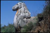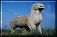 藏王墓位于西藏自治區(qū)瓊結(jié)縣,是公元七——九世紀(jì)歷代吐蕃贊普的墓葬群,現(xiàn)存石獅一對(duì)和石碑、柱等。造型除受中原影響外,樣式特征亦帶有波斯風(fēng)格影響。