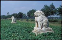 從上述天人合一的認(rèn)識(shí)出發(fā),中國(guó)古代墓葬傳統(tǒng)從漢代起產(chǎn)生廠“因山為陵”、”依山為陵”、山水擇地、 自然景觀與人文景現(xiàn)有機(jī)結(jié)合、同時(shí)考慮到方位、朝夕、陰晴的美感變化等一系列景觀追求。這種追求具有相當(dāng)深刻的美學(xué)意義。就陵園石雕藝術(shù)而言,則提供了充分的環(huán)境審美層次,唐陵石雕以完善的形式體現(xiàn)著這外觀念,宋陵、明陵、清陵石雕均繼承了這一傳統(tǒng)并不斷予以發(fā)展。