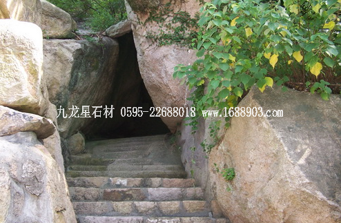 北天門,位于“海天佛國”石上方,王柱巨石旁,原由幾塊大石疊成,后因年久失修,門石倒塌已廢,幾塊門石仍在,但現(xiàn)在普陀山年輕人已不知此門了。北天門周邊古樹名木參天,門下方有條1080級石階的香云路。據(jù)說,此路原來是一條巖石縱橫的天然山徑,途中景色雖好,但道險難登,清光緒三十年(公元1904年)慧濟寺住持文正、慶祥募資砌石筑成。沿路繁枝交錯,飛禽鳴啼。西側(cè)的青玉澗自白華山頂?shù)缴侥_,一帶漂流,淙淙汩汩之聲,時斷時續(xù),曾有詩贊此景:“一澗冷冷沏沏清,鏡人心影得嘉名;誰言觀海難為水,雨后飛泉十丈贏。”香云路一側(cè)還塊刻有“海天佛國”四字的大石塊,筆力剛勁,醒目壯觀,為抗倭名將候繼高書。相傳,當年候繼高駐山抗倭,佯裝上佛頂山禮佛,鳴鑼開道,引寇入山,一舉全殲之?!昂L旆饑边@四字點出了普陀山山海之勝的特色,后便成了普陀山的代稱?!昂L旆饑笔嫌织B有一石,狀似倚鐘,直插青冥,云霧纏繞,險而且玄。石上鐫有“云扶石”三字,但不知題刻者姓名和年代。據(jù)說,1962年大文學(xué)家郭沫若游普陀時,在佛頂山上曾以“佛頂山頂佛”作上聯(lián)向同行者求對,要求從普陀山尋覓一名與之對偶的下聯(lián),而且都要倒讀順讀皆成句。當時眾人苦思冥想,無以對答。后來后山有一山民郭氏以“云扶石云扶”句對上,聞?wù)邿o不傾到,一時傳為佳話。