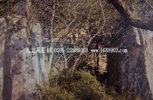 西天門,位于心字石景點上方(見圖),該處有塊蛤蟆石與山邊的一塊巨石相聯(lián),兩石相峙似門,上又覆巨石,題鐫“西天法界”四字,門右巨石上題刻“證菩提道”、“寰海鏡清”。西天門外有一塊似蛇首的大石塊,形象逼真,惟妙惟肖,流傳著發(fā)人警醒的觀音斗惡蟒的故事。進門右上峰頂,一石壁立,酷似一老僧佝腰負囊面西而行,稱達摩蜂。清吳祺詩云:“蕭梁臺殿草茸茸,面壁親傳少室宗。只履西歸無覓處,誰留明月照孤峰?!北旧缴湓娫?“嵩山人似壁,補洛壁如人,獨立孤峰上,誰逢蔥嶺身?!爆F(xiàn)因林木茂盛,達摩已掩在其中了。據(jù)傳,西天門是凡間佛教信徒去西天說法臺聽觀音說法的必進之門。