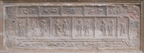 清初人物圖石供桌裙(圖10) 高61厘米,長237厘米,厚16厘米。