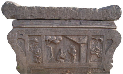 清孝子故事石供桌座(圖14) 高67厘米,長130厘米,寬63厘米。