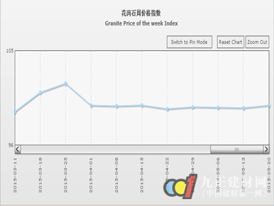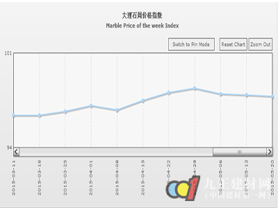 據(jù)“中國·水頭石材指數(shù)”系統(tǒng)監(jiān)測,20150520期石材周價格指數(shù)收報于98.63點(diǎn),環(huán)比略上浮0.01點(diǎn),上浮約0.01%。本周石材價格指數(shù)穩(wěn)中微升,其中大理石類價格小幅下滑,其他石材類價格環(huán)比持平,花崗石、合成大理石類價格均有所回升,本周石材價格總體走勢平穩(wěn)。大部分品類價格仍較穩(wěn)定,部分品種價格隨板面質(zhì)量及市場需求變化小幅波動調(diào)整。