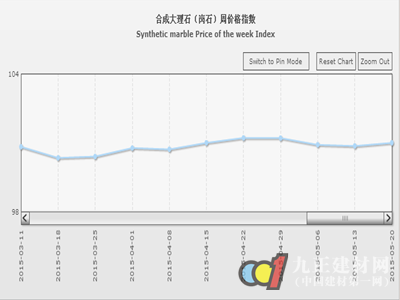 合成大理石類本周價格指數(shù)收報于100.99點(diǎn),回升0.14點(diǎn),回升0.14%。本周合成大理石類價格有所回升,其中荒料及成品價格繼續(xù)與上周持平,大板價格小幅反彈。部分合成大理石大板因出口需求有所增加,交易價格小幅提升。