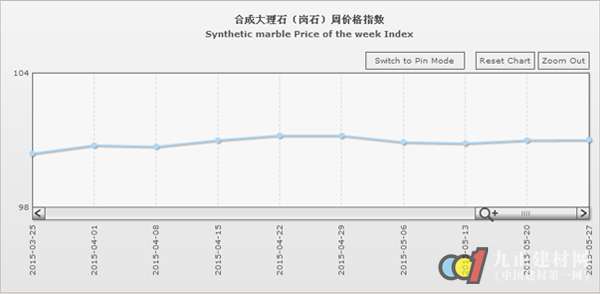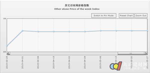 據(jù)“中國(guó)·水頭石材指數(shù)”系統(tǒng)監(jiān)測(cè),20150527期石材周價(jià)格指數(shù)收?qǐng)?bào)于98.71點(diǎn),環(huán)比略上浮0.08點(diǎn),上浮約0.08%。本周石材價(jià)格指數(shù)延續(xù)上周穩(wěn)中微升的趨勢(shì)、繼續(xù)微幅推升,其中其他石材類(lèi)價(jià)格環(huán)比持平外,大理石、花崗石、合成大理石類(lèi)價(jià)格均有所回升。大部分品類(lèi)價(jià)格變化仍較穩(wěn)定,部分品種價(jià)格因市場(chǎng)需求有所增加及板面質(zhì)量差異小幅上揚(yáng)。