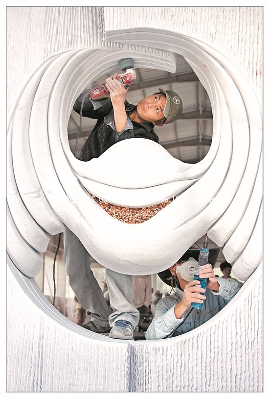 ——精湛技藝踏遍山河。在對惠安“世界石雕之都”的命名函中,世界手工藝?yán)硎聲缡菍懙?“惠安已成為國內(nèi)外產(chǎn)業(yè)規(guī)模最大、工藝水平最高、產(chǎn)品種類最齊全、加工能力最強(qiáng)的石雕石材工藝品生產(chǎn)加工與出口基地?!迸c之相映生輝的,是惠安雕藝工匠們踏遍祖國山河,將作品和技術(shù)傳揚(yáng)至海內(nèi)外。此次攝影展中,就有不少攝影家們赴外地采風(fēng),用鏡頭將大江南北的惠安雕藝精品力作,仔細(xì)珍藏,拍下了《長沙青年毛澤東雕像》、《中央革命根據(jù)地歷史博物館大型浮雕(江西省瑞金市)》、《沙縣淘金山舍利塔》等佳作。而《傳統(tǒng)石雕龍柱》更攝下臺北龍山寺、福州定光寺、安溪文廟、晉江安海龍山寺、泉港峰尾東岳廟、泉港沙格靈慈宮等多個寺廟的龍柱,拼為組圖,集中展現(xiàn)惠安石匠們的精湛技藝。