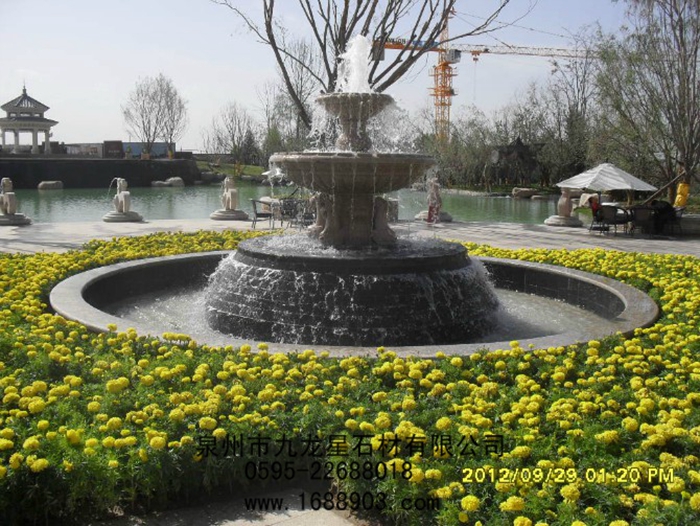 噴泉是園林中重要的組成部分。現(xiàn)代園林中,除了植物景觀外,噴泉也是重要的景觀,它既是一種水景藝術,體現(xiàn)了動、靜結合,形成明朗活潑的氣氛,給人以美的享受;同時,噴泉還可以增加空氣中的負離子含量,起到凈化空氣、增加空氣濕度、降低環(huán)境溫度等作用,因此深受人們的喜愛。噴泉的種類很多,根據(jù)材質分為以下幾種:石雕噴泉、玻璃鋼噴泉、陶瓷噴泉、人造石噴泉、鋼管結構噴泉等。其中石雕噴泉具有結實耐用、藝術價值高、造型美觀等特點應用最為廣泛。