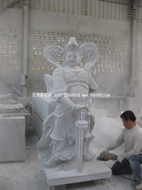 此尊石雕韋陀造像含踏板高1.72米,材質(zhì)為福建白石花崗巖。