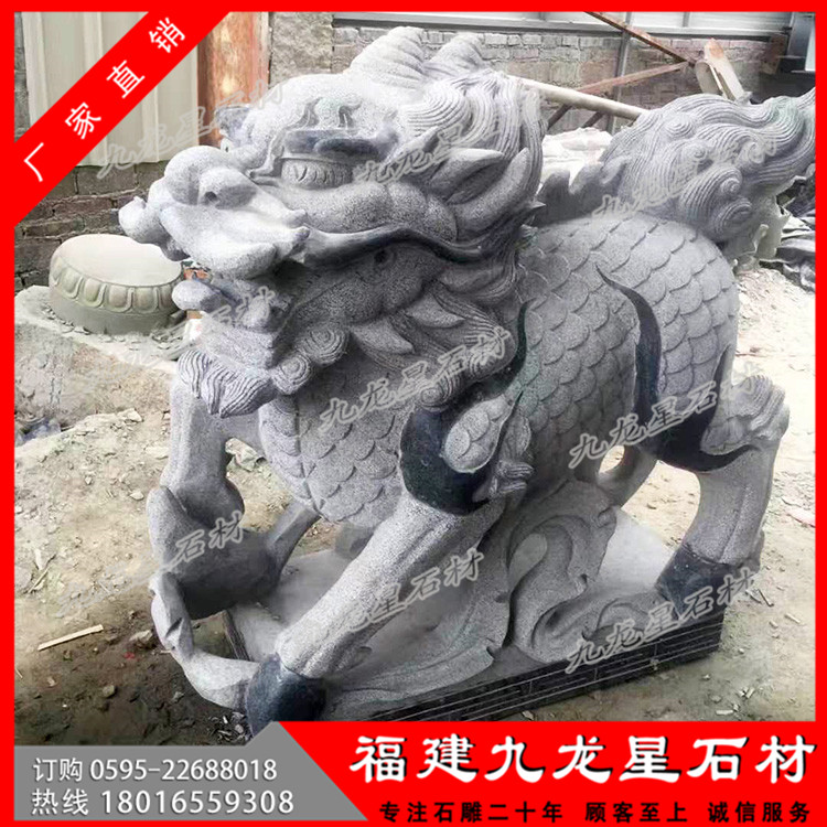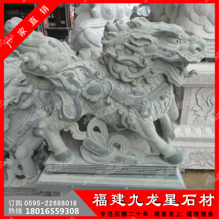 石刻麒麟是中國傳統(tǒng)工藝品之一。民間認(rèn)為麒麟有鎮(zhèn)宅辟邪,增添家中吉祥的作用。石刻麒麟是古代的仁獸,集龍頭、鹿角、獅眼、虎背、熊腰、蛇鱗、馬蹄、豬尾于一身,乃吉祥之寶,從古到今都是公堂上的裝飾,以振官威之用,也是權(quán)貴的象征。 福建惠安有著極為豐富的石材資源,用**天青墨玉、霞玉、緬甸玉、漢白玉、墨玉、佘太玉、砂巖、大理石、花崗石、銀灰白石、雪花白等石材玉料雕刻石刻麒麟。