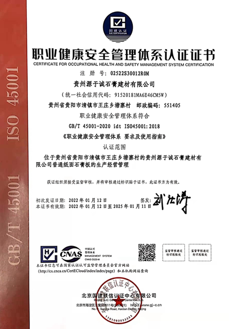 職業(yè)健康安全管理體系認(rèn)證證書